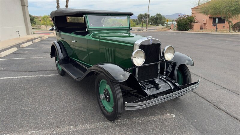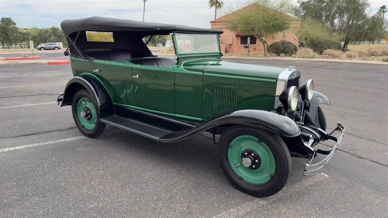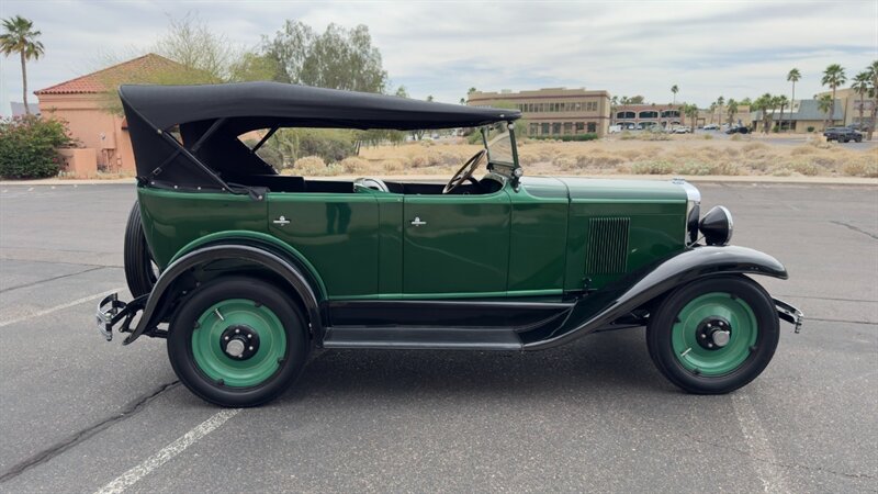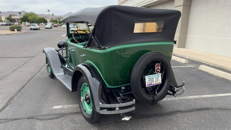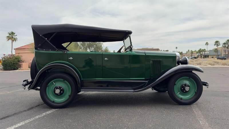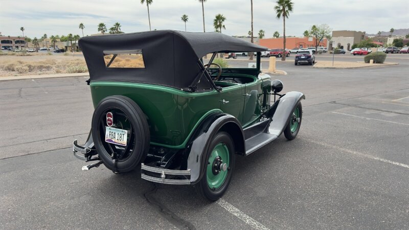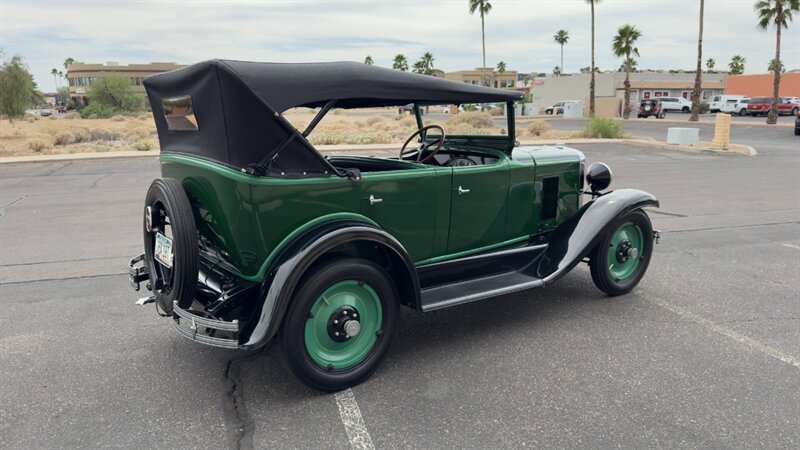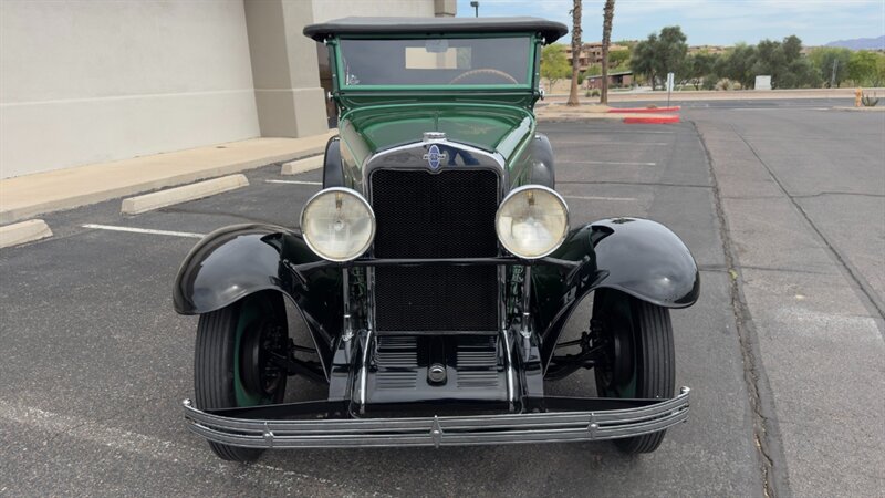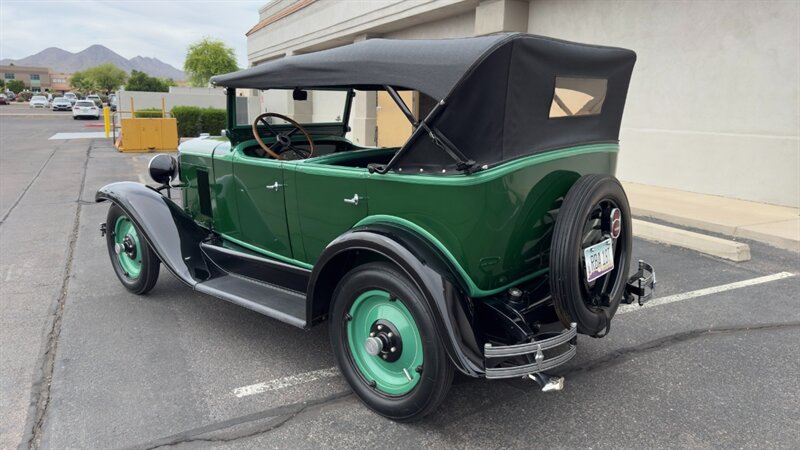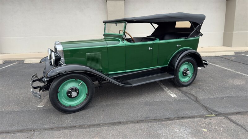 The year 1929 marked a monumental shift for Chevrolet with the introduction of the Series AC International. Famously marketed under the bold banner "A Six in the Price Range of the Four," the AC International debuted Chevrolet's legendary overhead-valve inline-six, effectively firing a warning shot across the bow of Ford's Model A. Offering exceptional value, smooth power delivery, and refined styling, the Series AC cemented Chevrolet's position as a dominant force in the American automotive landscape. This exceptional four-door Phaeton is a beautiful representation of that historic milestone, offering the rare opportunity to experience an authentic, open-air motoring experience straight out of the Roaring Twenties. The example offered here boasts a celebrated history within the collector community. Following a comprehensive refurbishment under previous ownership, this Phaeton earned the highly coveted Antique Automobile Club of America (AACA) National First Prize, alongside a Carolina Region Senior Award, in 1984. Acquired by the current consignor via Bring-A-Trailer in 2024 and now residing on a clean Arizona title, it presents with a well-preserved aesthetic that honors its award-winning pedigree. The body is elegantly finished in a two-tone Green and Teal, beautifully accented by teal pinstriping and contrasting black fenders. The brightwork, including the prominent chrome radiator surround and bumpers, remains striking. It rides on a 107-inch wheelbase, grounded by 20-inch teal-painted disc wheels featuring Chevrolet-branded hubcaps and black steel rims wrapped in period-correct bias-ply tires. A rear-mounted spare, a central taillight, and a complete black soft top with matching side curtains finish off the authentic exterior presentation. Stepping past the running boards and into the cabin is like stepping directly into a time capsule. The interior is purposefully appointed, featuring front and rear bench seats trimmed in durable black upholstery, perfectly matched by color-coordinated door and rear cabin panels. Black rubber floor mats protect the footwells, maintaining the period-correct aesthetic. The driver commands the road via a classic wood-rimmed steering wheel, which fronts a painted steel dash. A central instrument cluster houses the vital auxiliary gauges and a charming 80-mph barrel-type speedometer. While the five-digit odometer shows 36,000 miles, the true mileage remains unknown. Lifting the louvered hood reveals the heart of this historic Chevrolet: the 194-cubic-inch "Stovebolt" inline-six. Factory rated at 46 horsepower at 2,600 rpm, this engine fundamentally changed the expectations for entry-level automobiles of the era. Power is managed smoothly through a three-speed manual transmission, sending drive to the rear wheels. The chassis retains its authentic architecture, utilizing semi-elliptical leaf springs at all four corners and four-wheel mechanical drum brakes to handle stopping duties. Benefiting from recent engine and radiator services, this historic Phaeton is mechanically sorted and ready to carry its next caretaker on a nostalgic journey through automotive history. To view the BaT listing from the previous sale: https://bringatrailer.com/listing/1929-chevrolet-ac-phaeton/