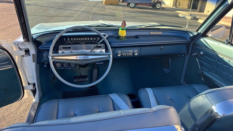 The 1962 Buick Skylark arrived at a pivotal moment in American automotive history, defining a new segment that prioritized sophistication over sheer size. As the top-trim version of the Special, the Skylark brought traditional Buick luxury—plush interiors, bright trim, and a silent ride—into a more manageable, compact footprint. It was a car for the discerning buyer who wanted the prestige of a Tri-Shield badge without the imposing dimensions of an Electra or Invicta. With its clean lines, sculpted sides, and purposeful stance, the ’62 Skylark exudes a mid-century elegance that is both understated and undeniably premium. The cocktail gets more potent when you examine the engineering, which was remarkably advanced for its time. Under the hood sits the original 215-cubic-inch V-8. Factory rated at 190 horsepower, this engine is renowned for its lightweight architecture and spirited performance relative to the car’s size. It is mated to a smooth-shifting 2-speed automatic transmission, creating a powertrain designed for relaxed, confident progress. Crucially, this example is equipped with power steering, transforming the driving experience into an effortless affair. A recent inspection revealed no mechanical flaws, confirming that this Skylark is ready to serve as a reliable and delightful weekend cruiser. The example offered here is a convertible finished in Arctic White over an original Light Blue interior—a crisp, airy color scheme that perfectly suits the car’s open-air character. The exterior paint retains a good luster and presents very well from five feet, making it an ideal "driver quality" classic that can be enjoyed without hesitation. The white power convertible top is in fantastic condition and operates smoothly, sealing the cabin or opening it to the sky with a twist of the knob. Inside, the preservation is remarkable; the Light Blue upholstery and carpeting appear to be original to the car and have been maintained to a high standard. The brightwork, badges, and trim all show very well, further evidencing the life this car has led. Above all, this Skylark radiates a distinct "pride of ownership." It has clearly been a cherished member of its current owner’s garage for many years, loved and maintained rather than simply stored. For the enthusiast seeking a stylish, turn-key convertible with genuine history and character, this Buick offers an effortless entry into the world of classic luxury.