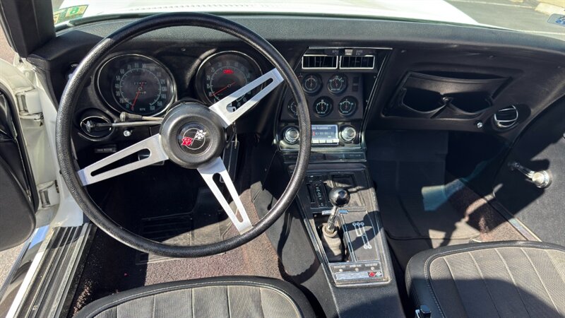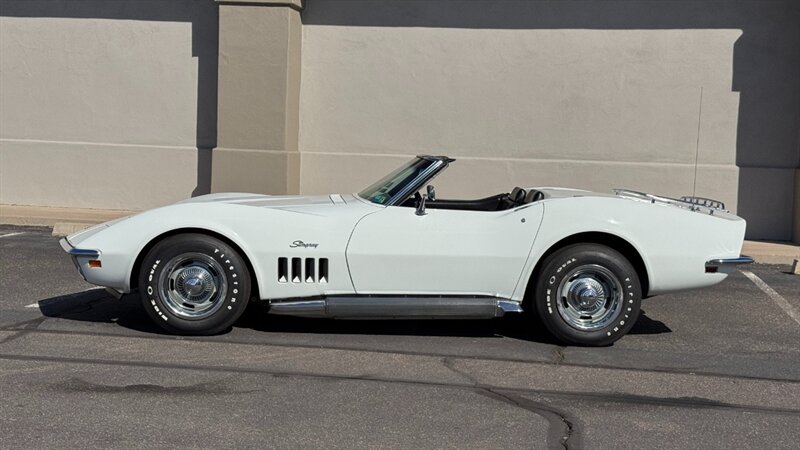 The 1969 Chevrolet Corvette Stingray is often cited as the definitive iteration of the "Shark" body style. It marked the return of the "Stingray" script to the front fenders—now as one word—and solidified the muscular, flared-fender aesthetic that would define the brand for more than a decade. With its removable tops, chrome bumpers, and aggressive stance, the '69 model perfectly captured the swagger of late-60s American performance. It was a machine built for drivers who demanded both style and substance, offering a level of engagement that modern sports cars struggle to replicate. The excitement intensifies when you lift the hood to reveal the original, numbers-matching powertrain. The heart of this Stingray is the venerable L46 350-cubic-inch V-8. Factory rated at 350 horsepower and featuring an 11:1 compression ratio, the L46 is widely considered the "sweet spot" of the small-block lineup, offering big-block acceleration with small-block handling balance. It is mated to a stout 4-speed manual transmission, putting complete control in the palm of the driver’s hand. The visceral experience is amplified by factory side-exit exhaust pipes, which deliver the classic small-block soundtrack directly to the driver’s ear. The engine bay is well-detailed and presents as a show-ready example of American engineering. The example offered here is finished in its original shade of Can-Am White (Code 972). The paint is in fantastic condition, having recently benefited from a professional paint correction and ceramic coating that locks in a deep, wet gloss. This preservation is matched by the brightwork; the chrome bumpers and emblems appear original and well-cared-for, serving as a testament to the car's history of just six caretakers from new. This specific example was previously acquired at Barrett-Jackson Scottsdale, adding another layer to its provenance. It features the stylish TJ2 Front Fender louver trim and comes complete with two tops: a black convertible soft top described as "like new," and the original factory hardtop, which is in fantastic condition and includes a rollable storage stand. Inside, the preservation continues with an excellent Black interior. The bucket seats, carpets, dashboard, and switchgear remain in very nice condition. Crucially, this convertible is equipped with Factory Air Conditioning, a rare and highly desirable option that makes this car a true year-round tourer. However, the true value of this Corvette lies in its verified history. It has been judged at a National Corvette Restorers Society (NCRS) meet, where it achieved a final score of 92.7 and earned a prestigious "Second Flight" award for originality. Furthermore, it has been shown at Bloomington Gold numerous times over the years, confirming its status as a high-level survivor recognized by the most exacting standards in the Corvette community. Whether used for local shows, spirited drives, or touring, this 1969 Stingray offers the perfect blend of preservation, performance, and rare factory options.