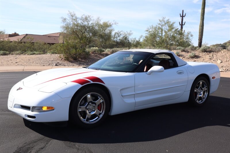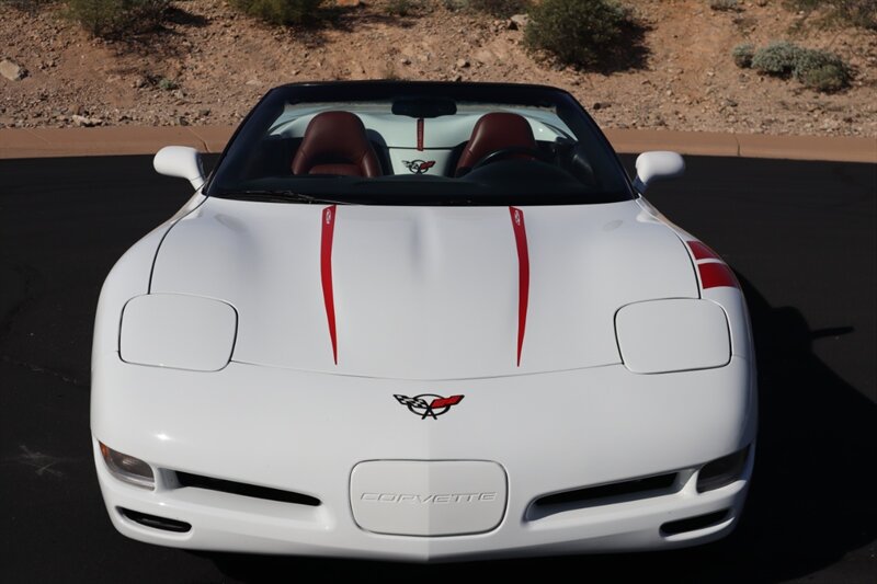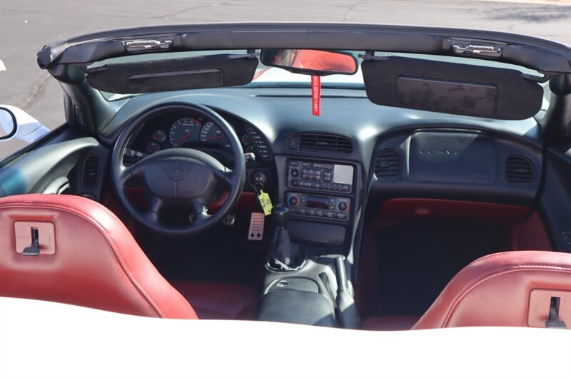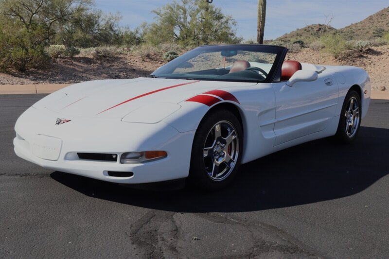 The introduction of the C5 generation Corvette in 1997 was not merely an update; it was a clean-sheet revolution that fundamentally redefined America’s Sports Car. Freed from the constraints of previous architectures, the C5 debuted a hydroformed box frame and a rear-mounted transaxle—a sophisticated layout that delivered a near-perfect 50/50 weight distribution. While it honored the Corvette’s visual heritage with its pop-up headlights and quad taillights, the C5 was an uncompromising marriage of structural rigidity and refined aerodynamics. It was a machine designed to compete not just on the drag strip, but on the winding roads of Europe, setting a new benchmark for handling and ride quality that resonates even today. The cocktail gets more potent when you look beneath the bodywork to the heart of the machine: the legendary LS1 V-8. This all-aluminum 5.7-liter engine marked the dawn of the modern small-block era. In this example, the powerplant has been treated to a suite of thoughtful, period-correct performance enhancements designed to optimize airflow and throttle response. The intake tract has been upgraded with a K&N induction system, a high-flow MAF housing, and an upgraded throttle body tube. Fuel delivery is managed by an adjustable fuel pressure regulator and fuel recurve hose, while a coolant by-pass modification further optimizes thermal efficiency. The visceral experience is capped by a Mid America Designs performance exhaust system, giving the LS1 a vocal character to match its enhanced mechanical urgency. The example offered here is a 1998 Convertible, finished in the timeless combination of Arctic White over a Firethorn Red interior—a livery that evokes the spirit of the original 1953 Corvette. It is topped by a white convertible soft top that perfectly complements the exterior finish. It is a true time capsule, having had just one owner from new—a dedicated collector who has preserved the car since day one. Showing just 38,000 original miles, the vehicle presents as a highly collectible grade example. The exterior presentation is extraordinary, with the Arctic White paint showing a depth and clarity that rates a solid 9.8 out of 10. Inside, the Firethorn Red cabin is equally impressive, rated a solid 9 out of 10, showing a level of preservation rarely seen in C5s of this vintage. Accompanied by its specific list of performance upgrades, this single-owner Corvette offers a rare opportunity to acquire a sorted, enhanced example of the platform that brought the Corvette into the modern era.