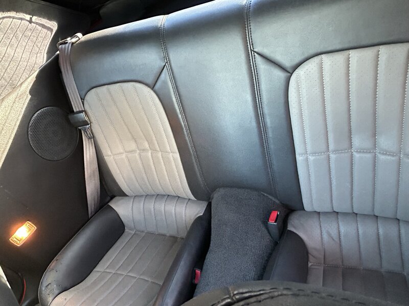 - Front bucket seats with bolstered sport contours; upholstery options included cloth or available leather.