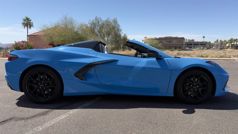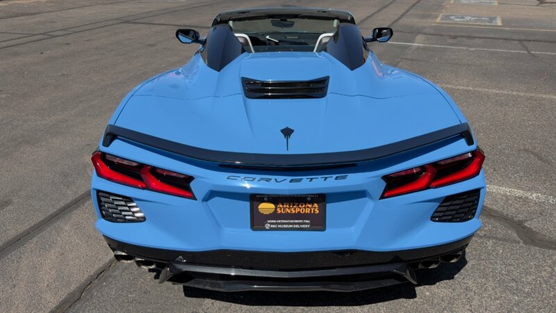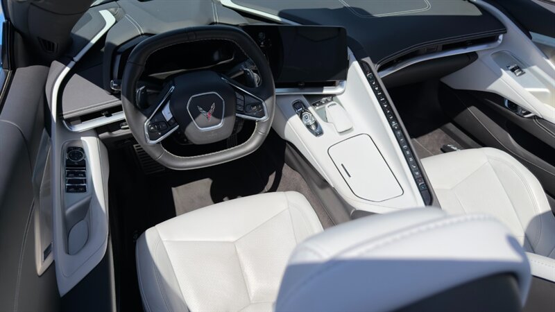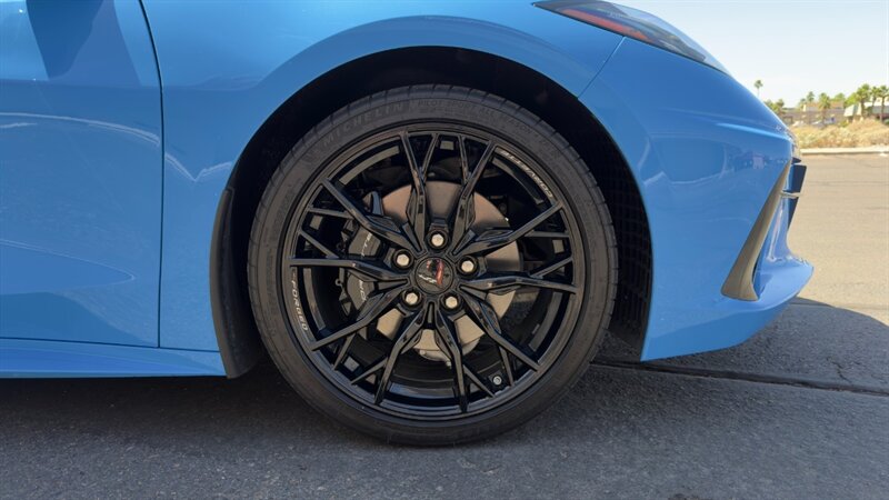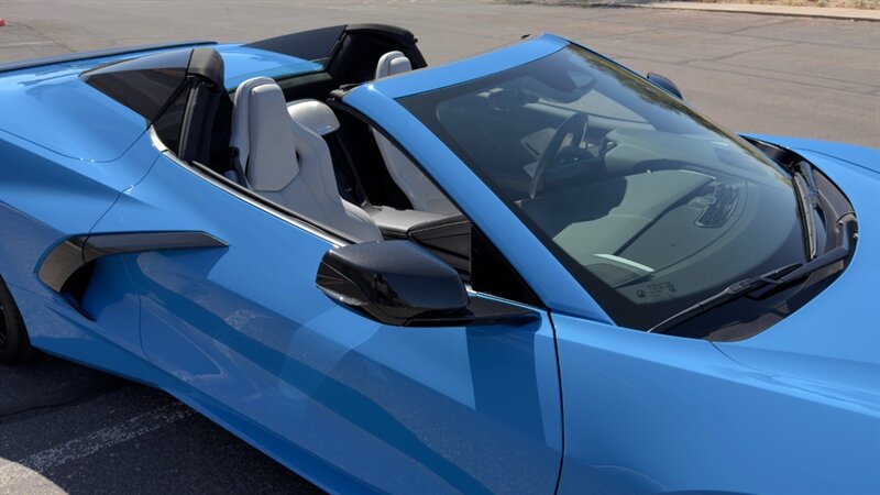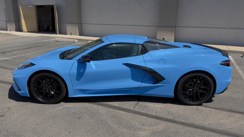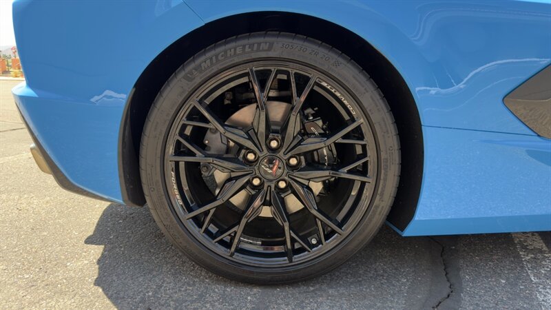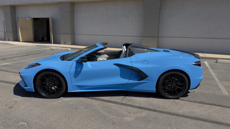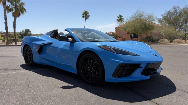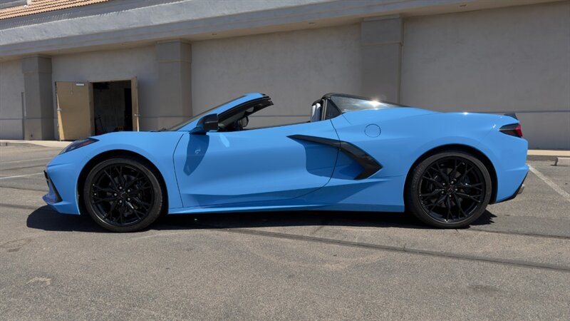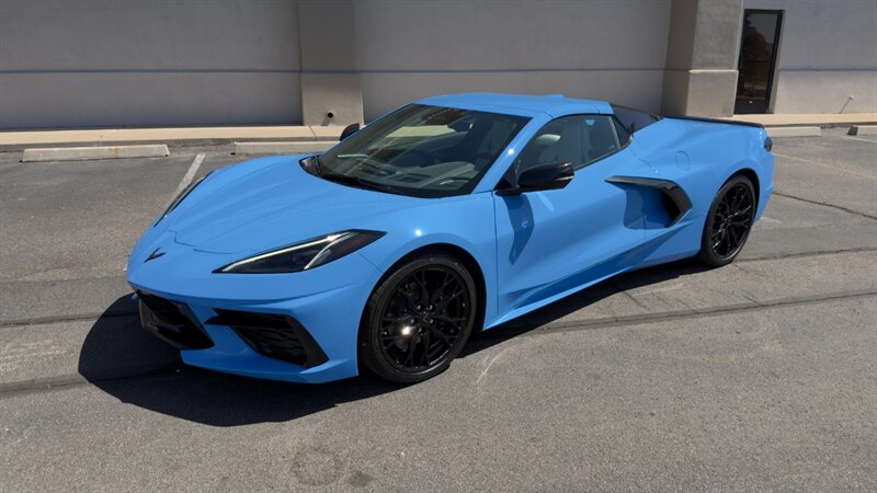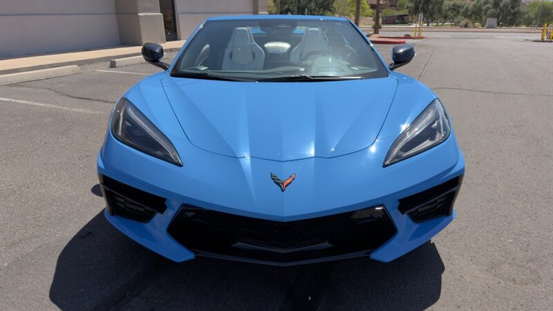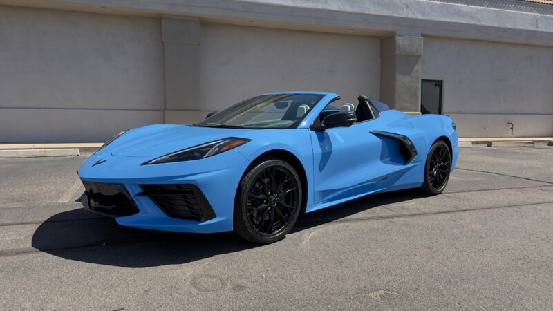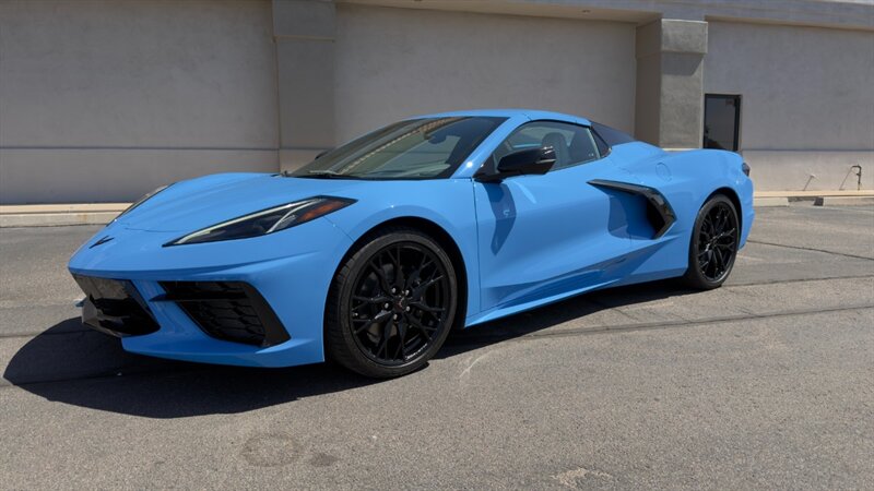 The introduction of the eighth-generation Corvette fundamentally altered the global supercar landscape. By moving the 6.2L V8 DI engine behind the cabin, Chevrolet unlocked a level of rotational balance and acceleration that finally put European exotics on notice. The 2024 Corvette Stingray Convertible 2LT refines this mid-engine architecture into a world-class grand tourer, offering breathtaking performance without sacrificing daily usability. What truly separates this specific example from a crowded market is its exceptionally curated option sheet. The powertrain delivers a visceral acoustic experience as it revs through the lightning-fast 8-speed dual-clutch transmission , enhanced by an active Performance Exhaust. The chassis dynamics are elevated by Magnetic Selective Ride Control, a highly sought-after suspension system that instantly adapts to provide either track-focused stiffness or supple highway cruising. Furthermore, navigating steep driveways is completely effortless thanks to the Front Lift Adjustable Height with Memory , protecting the front fascia. The exterior presentation is an absolute standout. It is finished in the vibrant Rapid Blue , providing a stunning, aggressive contrast against the Carbon Flash Painted Nacelles and Carbon Flash Metallic Painted Outside Mirrors. To ensure this striking finish remains flawless, the exterior has been professionally ceramic coated, and a full Paint Protection Film (PPF) has been meticulously applied to the front of the car, including the full hood, mirrors, and nacelles. The profile is grounded by a set of optional 20-spoke Gloss Black Forged Aluminum wheels measuring 19 inches in the front and 20 inches in the rear. When the power retractable hard top is dropped , it reveals a pristine Sky Cool Gray interior, creating a remarkably sophisticated and airy cabin aesthetic that perfectly offsets the bright exterior. As a 2LT, the cockpit is heavily equipped for driver comfort and modern connectivity. The 8-way power GT bucket seats are both heated and ventilated , which, paired with the heated leather-wrapped steering wheel, ensures year-round open-air enjoyment. The technology suite leaves nothing to be desired, featuring a Head-Up Display , a premium Bose Performance Series 14-speaker audio system , and the integrated Performance Data and Video Recorder to capture your weekend drives. With just 17,500 miles on the odometer, this impeccably maintained, one-owner Stingray boasts undeniable enthusiast provenance, having originally been acquired via Corvette Museum Delivery. It is a fully dialed-in, heavily optioned modern marvel that perfectly balances aggressive, track-ready styling with refined touring luxury.