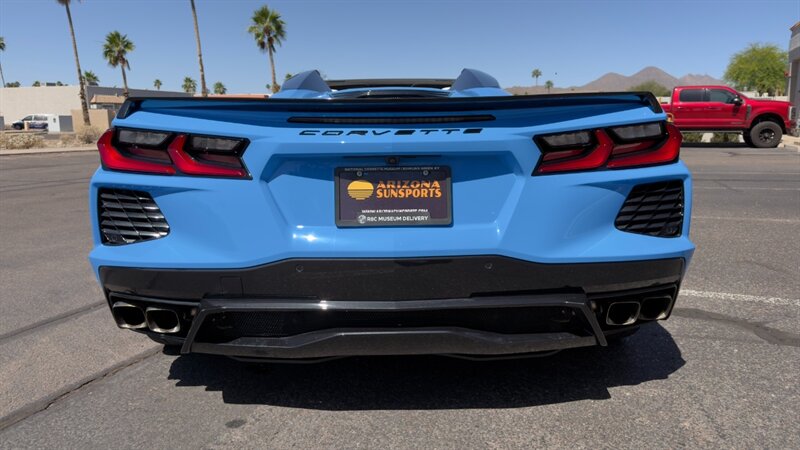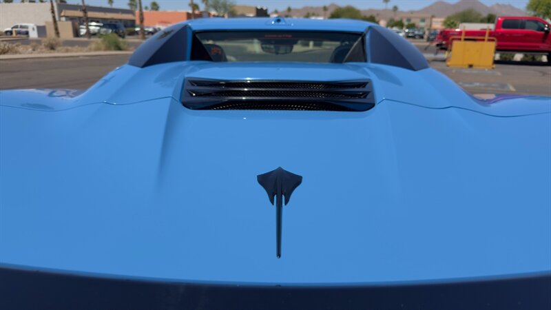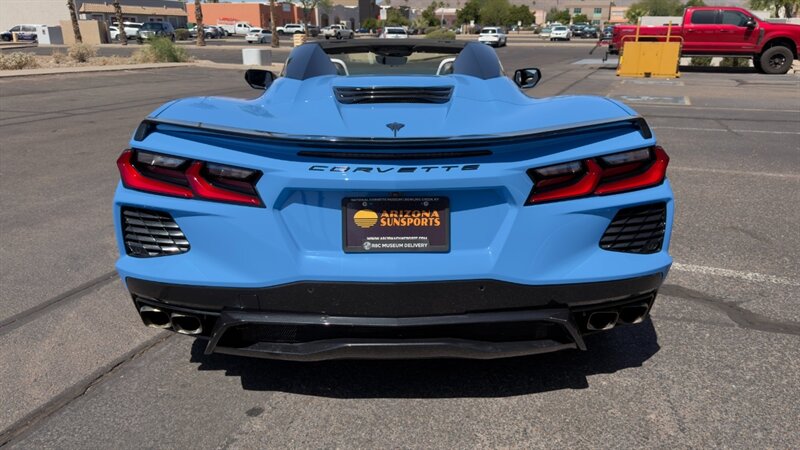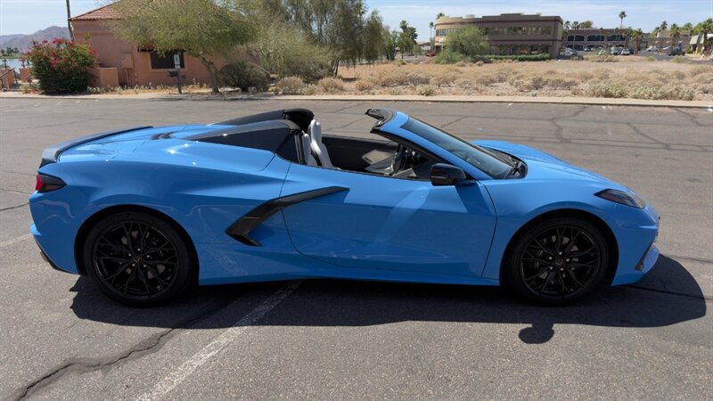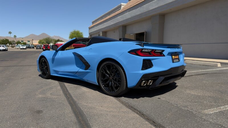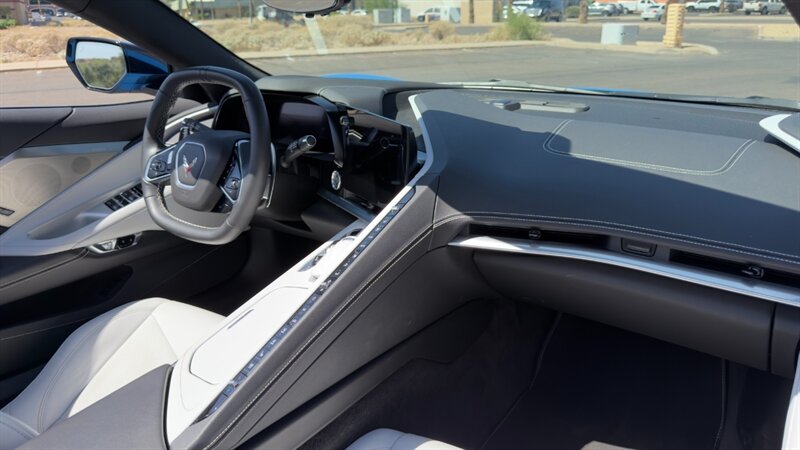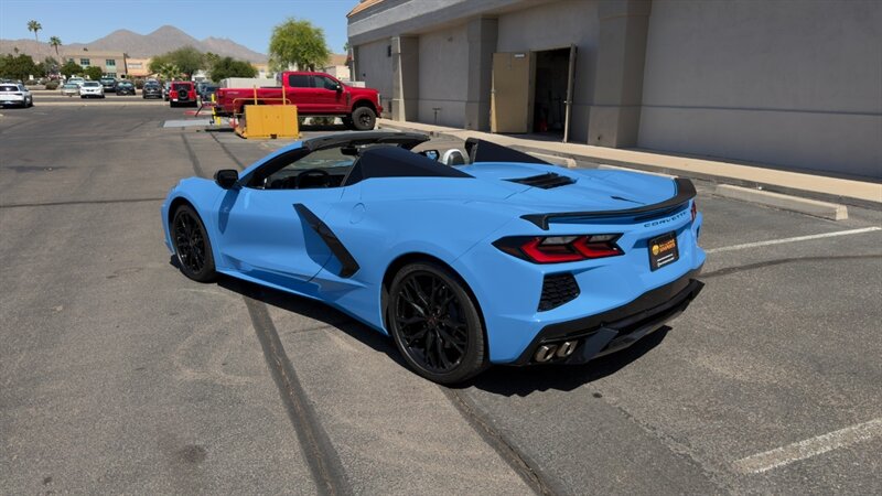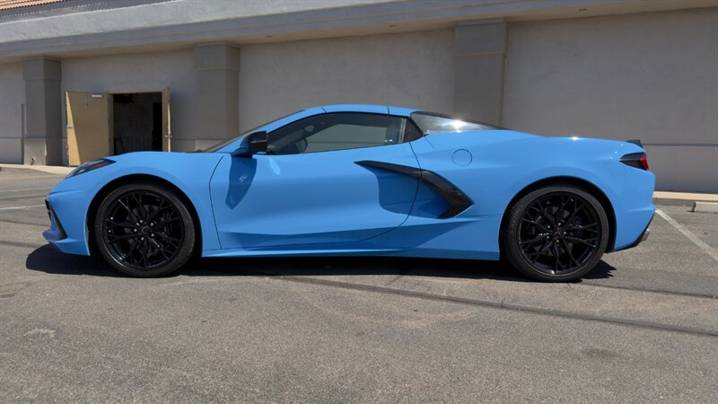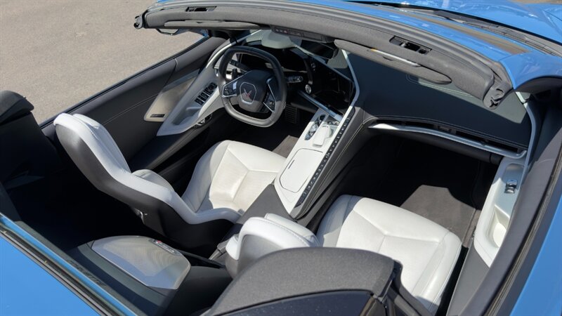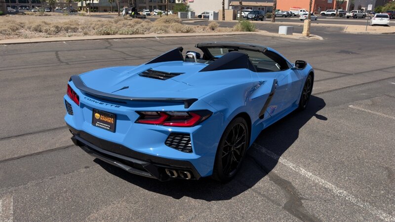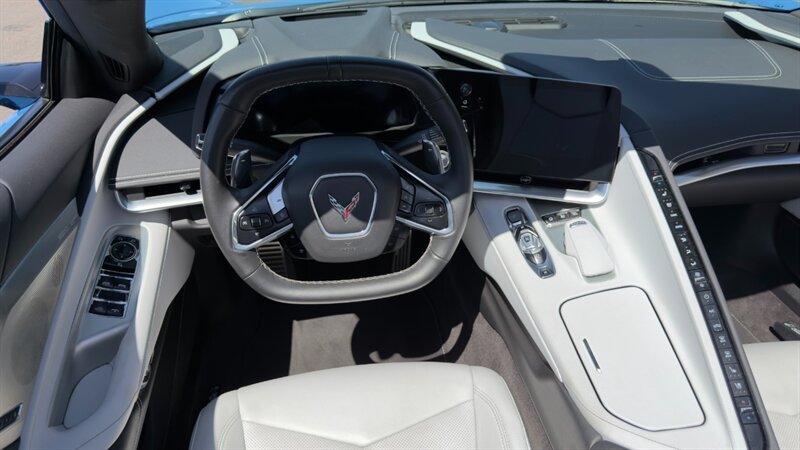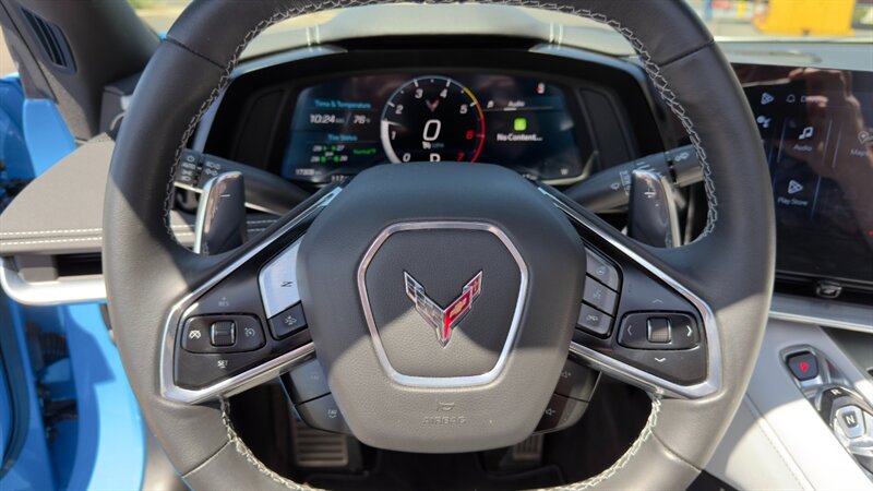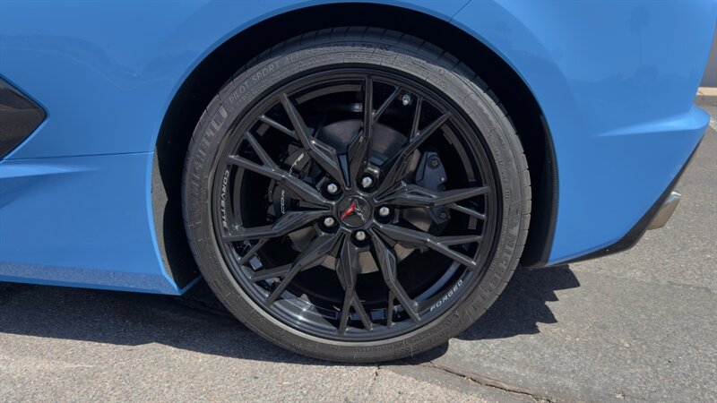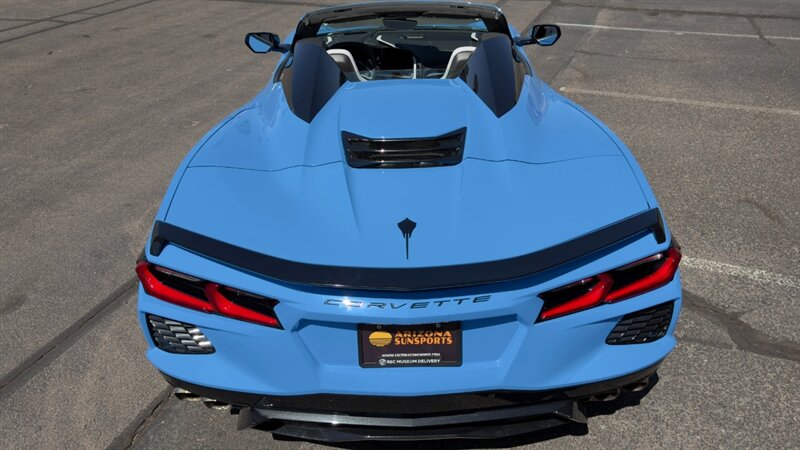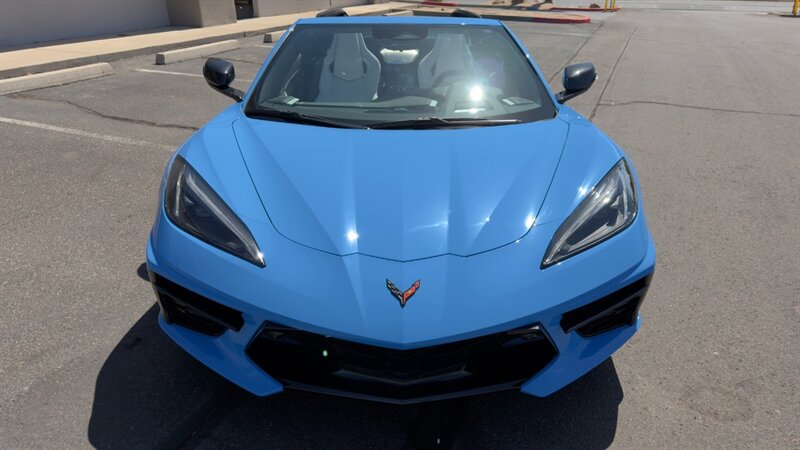The introduction of the eighth-generation Corvette fundamentally altered the global supercar landscape. By moving the 6.2L V8 DI engine behind the cabin, Chevrolet unlocked a level of rotational balance and acceleration that finally put European exotics on notice. The 2024 Corvette Stingray Convertible 2LT refines this mid-engine architecture into a world-class grand tourer, offering breathtaking performance without sacrificing daily usability. What truly separates this specific example from a crowded market is its exceptionally curated option sheet. The powertrain delivers a visceral acoustic experience as it revs through the lightning-fast 8-speed dual-clutch transmission , enhanced by an active Performance Exhaust. The chassis dynamics are elevated by Magnetic Selective Ride Control, a highly sought-after suspension system that instantly adapts to provide either track-focused stiffness or supple highway cruising. Furthermore, navigating steep driveways is completely effortless thanks to the Front Lift Adjustable Height with Memory , protecting the front fascia. The exterior presentation is an absolute standout. It is finished in the vibrant Rapid Blue , providing a stunning, aggressive contrast against the Carbon Flash Painted Nacelles and Carbon Flash Metallic Painted Outside Mirrors. To ensure this striking finish remains flawless, the exterior has been professionally ceramic coated, and a full Paint Protection Film (PPF) has been meticulously applied to the front of the car, including the full hood, mirrors, and nacelles. The profile is grounded by a set of optional 20-spoke Gloss Black Forged Aluminum wheels measuring 19 inches in the front and 20 inches in the rear. When the power retractable hard top is dropped , it reveals a pristine Sky Cool Gray interior, creating a remarkably sophisticated and airy cabin aesthetic that perfectly offsets the bright exterior. As a 2LT, the cockpit is heavily equipped for driver comfort and modern connectivity. The 8-way power GT bucket seats are both heated and ventilated , which, paired with the heated leather-wrapped steering wheel, ensures year-round open-air enjoyment. The technology suite leaves nothing to be desired, featuring a Head-Up Display , a premium Bose Performance Series 14-speaker audio system , and the integrated Performance Data and Video Recorder to capture your weekend drives. With just 17,500 miles on the odometer, this impeccably maintained, one-owner Stingray boasts undeniable enthusiast provenance, having originally been acquired via Corvette Museum Delivery. It is a fully dialed-in, heavily optioned modern marvel that perfectly balances aggressive, track-ready styling with refined touring luxury.